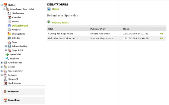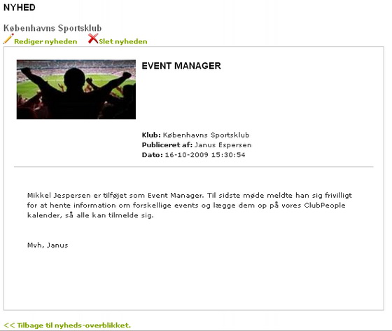 Administratoren for en klub kan oprette nyheder som vises til alle medlemmer, og på den offentlige forside for denne klub, hvis denne er slået til.